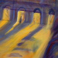 Da pittrice aveva scoperto una sincera empatia con Pasolini: aveva ascoltato con la sensibilità dell’artista la musicalità della parola in una lingua a lei conosciuta di grande potenza evocativa creando dei dipinti che non sono né interpretazione né tantomeno illustrazioni delle liriche pasoliniane ma sono ricerca dell’essenza di quei testi, essenza alla quale si giunge attraverso l’analisi del tutto (la poesia) e della parte (la singola parola nel verso). E questo avviene proprio in un momento in cui Dora Bassi, sperimentando, ricercando, teorizzando ma soprattutto dipingendo, si era così splendidamente avvicinata all’essenza della sua pittura attraverso una sapiente frequentazione delle possibilità espressive del colore intriso di luce in un’atmosfera sognante. I dipinti, riuniti in questo ciclo esposto presso il foyer del Teatro G. Verdi di Gorizia, sono una delle testimonianze più alte del lavoro di Dora Bassi pittrice: dipinti di una forza evocativa unica, conclusi nella singola tela, nel singolo soggetto e, al contempo, racconto che rimanda di quadro in quadro quasi si trattasse di un unico canto. Le figure adolescenziali efebiche, innocenti e inquietanti in sé, emergono e si immergono ad un tempo nella natura detta o allusa attraverso il colore prezioso steso con una pennellata sapiente, soggetti che vanno a scomparire (meglio dire a trasfigurare) nella luce pura. Dal giovanissimo Pasolini si giunge ad evocare il Pasolini maturo (e peccatore) o l’amatissima madre Susanna (che molto ricorda Dora) che diviene poi una soffice nuvola bianca. E tutte le suggestioni poetiche culminano pittoricamente in quella splendida stella che è Altàir.